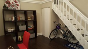 Here, staging with rental furniture and TRH’s props brought the happy to this modest den. It added interest, depth, and context, drawing buyers in, online and in person.